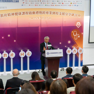 大灣區醫護教師社工協會於2025年3月15日成功舉辦「醫教社精神健康課程啟動禮暨跨專業到校支援分享研討會」。活動由聖方濟各大學、香港教育工作者聯會及聯合出版社轄下的香港管理學院協辦,東華三院、博愛醫院及首衛有限公司贊助,並獲醫院管理局、西貢民政事務處、六大慈善團體、10所大學等支持。活動吸引超過300名來自教育、醫療及社工界人士參與,共同探討如何透過醫護、教師及社工的跨專業聯動,了解各行業的工作實況,提升青少年及幼兒的精神健康,並支援照顧者的壓力管理。